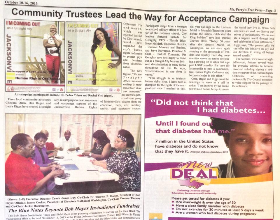 Deep appreciation to the Jacksonville Free Press for featuring the We Are Straight Allies campaign this week.